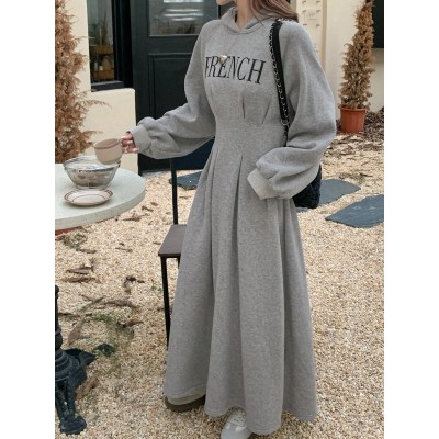 DAZY Women Hooded Casual Printed Long Sleeve Midi Dress,Fall Dress