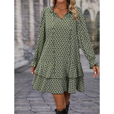 EMERY ROSE Allover Print Flare Sleeve Ruffle Hem Smock Dress Fall Cloth For Women