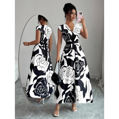 Women's Elegant Floral Print Dress, Summer