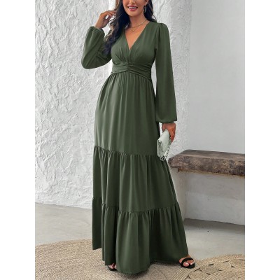 Women's Solid Color Simple Daily Long Sleeve Dress Maxi Women Outfit Fall Cloth For Women