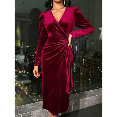 Lunessa Autumn Elegant Velvet Wrap Dress Maxi Women Outfit Fall Cloth For Women