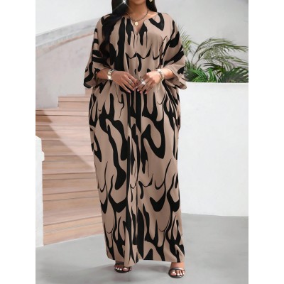 Women's V-Neck Contrast Color All-Over Print Loose Elegant Mid-Length Dress