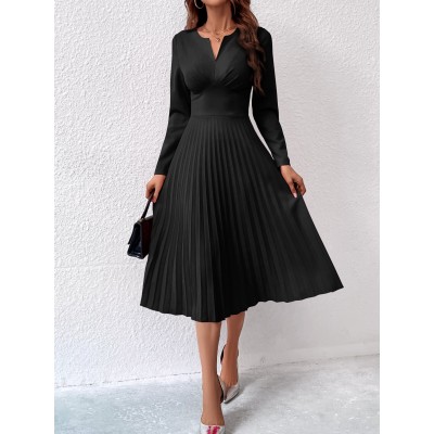 EMERY ROSE Notched Neckline Pleated Hem Dress Burgundy Maxi Women Outfit Fall Cloth For Women