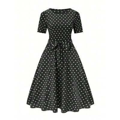 Solivie Women's Autumn Patchwork Crane Print Notched Neck Belted Dress,Summer Dresses For Women