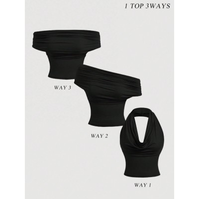 SHEIN MOD Women's Elegant Solid Color Versatile Halter Neck Top, Summer