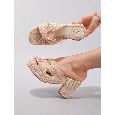 Rope Platform Wedge Twisted Open Toe Summer Vacation Casual High Heel Waterproof Sandals, Daily Fashion Women Shoes