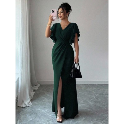 Sleeve V-Neck Waist Fitted Mermaid Hem Elegant Romantic Women Dress