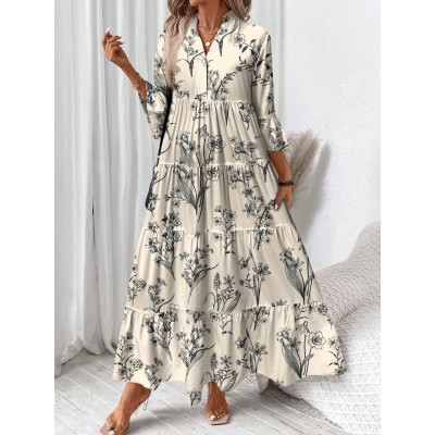 EMERY ROSE Casual Elegant Women's Mid-Length Dress, Autumn/Winter Chic Dress Boho Dress Women Tiered Dress Long Sleeve Floral Dress Floral Print Dress Cottagecore Dress