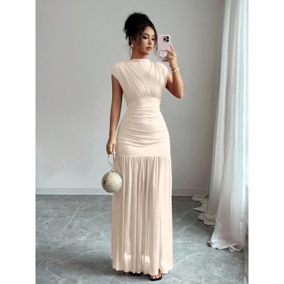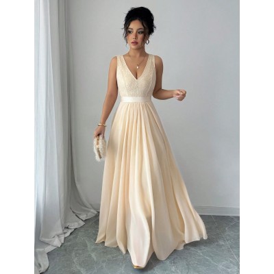 Sleeveless V-Neck Cinched Waist A-Line Elegant & Romantic Party Dress For Women Maxi Women Outfit