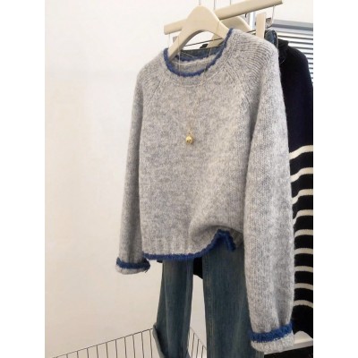 Fashionable Elegant Contrast Color Pullover Sweater, Suitable For Daily Wear, Outdoor Leisure And Travel In Autumn/Winter Season